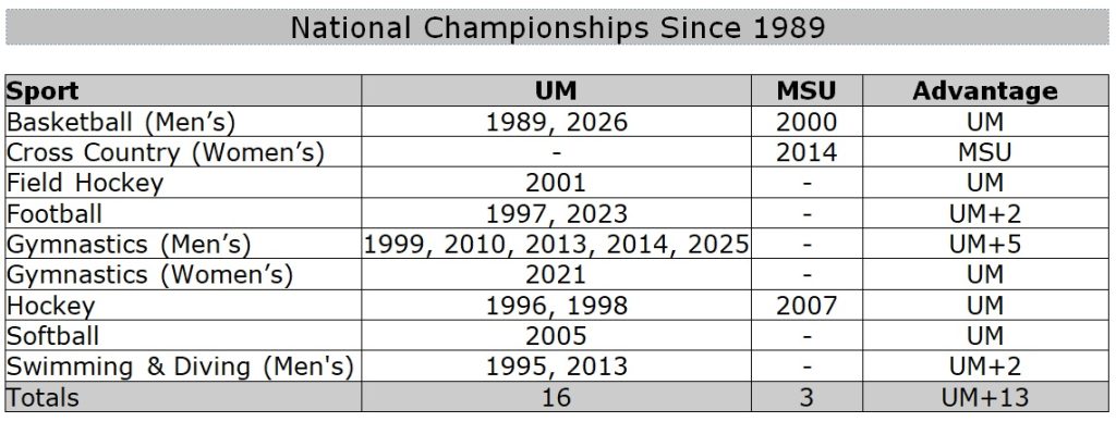 The (#3) University of Michigan men’s basketball team played two games this past week, and they won both of them. On Tuesday (02/24/2026), they beat Minnesota 77-67 in Crisler Arena, then on Friday (02/27/2026), they won at (#10) Illinois 84-70. Michigan’s record improves to 27-2 (17-1 in Big Ten). Michigan clinched 1st place outright in the Big Ten.