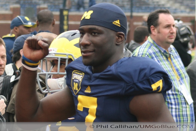 Thomas Rawls had two runs for TDs and 42-yards on 10 carries. His slashing, hard nose running style fits the system perfectly. Justice Hays got some carries. Fitzgerald Toussaint looked like, well, the Fitzgerald Toussaint you know. Coach Hoke identified FB Paul Gyamati as a tough runner, and lauded FB Stephen Hopkins as having a good spring.