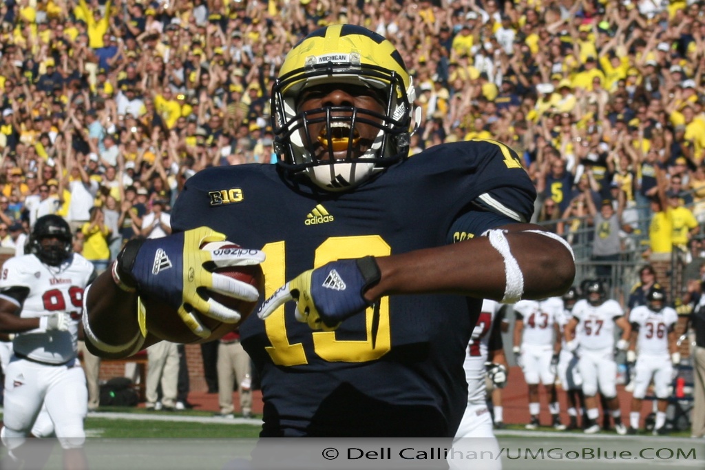 As I mentioned above, this rout did have an unusual feel. Probably because there were unnecessary penalties, plus Denard missed a wide open Gardner, overthrew Dileo, threw an interception, and fumbled on the goal line to slightly mar another outstanding performance. It has to be said when he makes mistakes he usually more than makes up for it, and he certainly did Saturday, but it is becoming apparent that in the first half of games he sometimes errs. When Denard makes a mistake he is forthright in admitting it. In his post-game press conference interview he mentioned them ruefully. The other than Denard running game waited until the second half to get going.