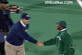 John Navarre was the Michigan player of the game. Granted that he made some errant tosses when it counted, one resulting in an interception, and threw into coverage. He played over these mistakes by making some athletic plays, and he engineered some long fourth quarter drives that were simply outstanding. He ran for an occasional first down, and sneaked for more, and caught a pass for a touch down. He finally won one in a hostile environment against a ranked team, having failed six prior times. He was 33 of 47 for 353 yards, one TD and one interception.